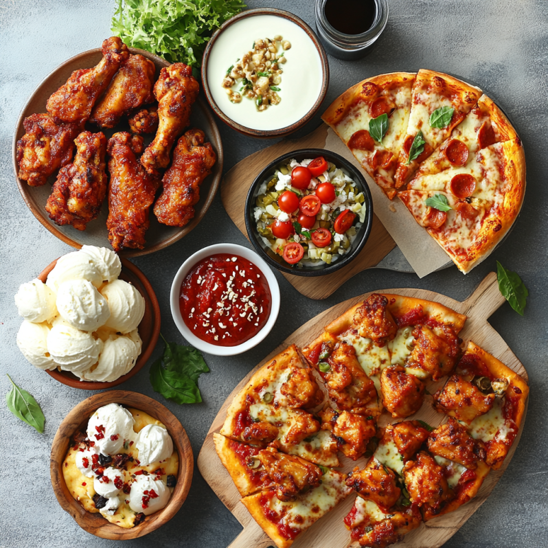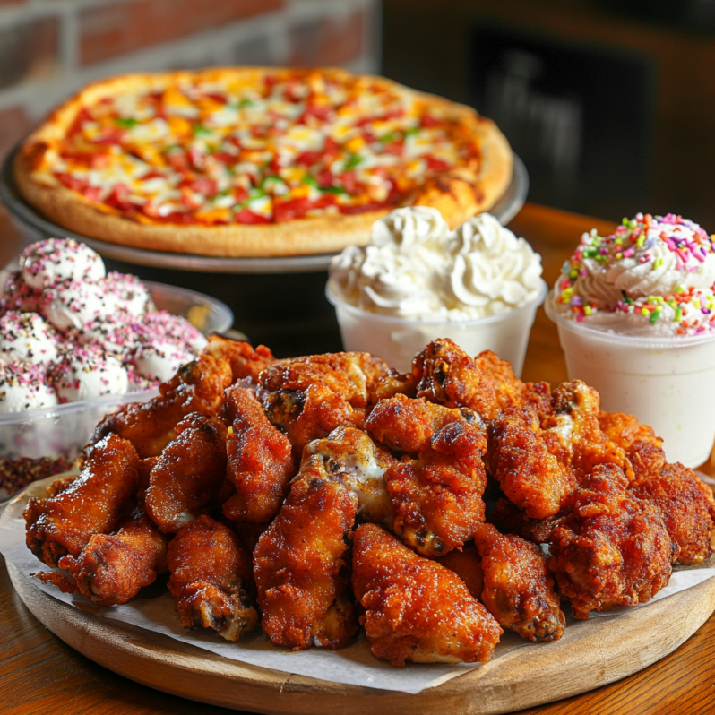 We start with premium ingredients like milk from pampered cows, real fruit purees, and freshly ground spices, then craft each item with meticulous old-fashioned technique rather than shortcuts. From slow kettle-smoking plump wings to patient hand-stretching velvety pizza dough, our goal is nuanced depth of flavor in every bite.